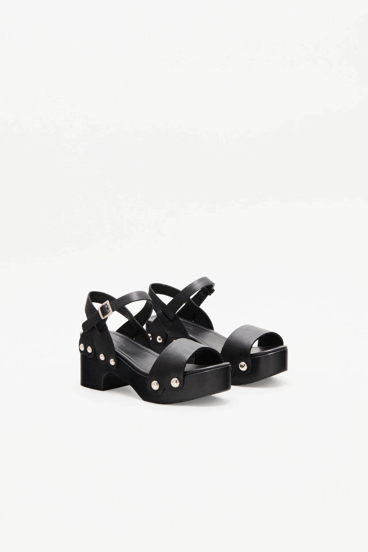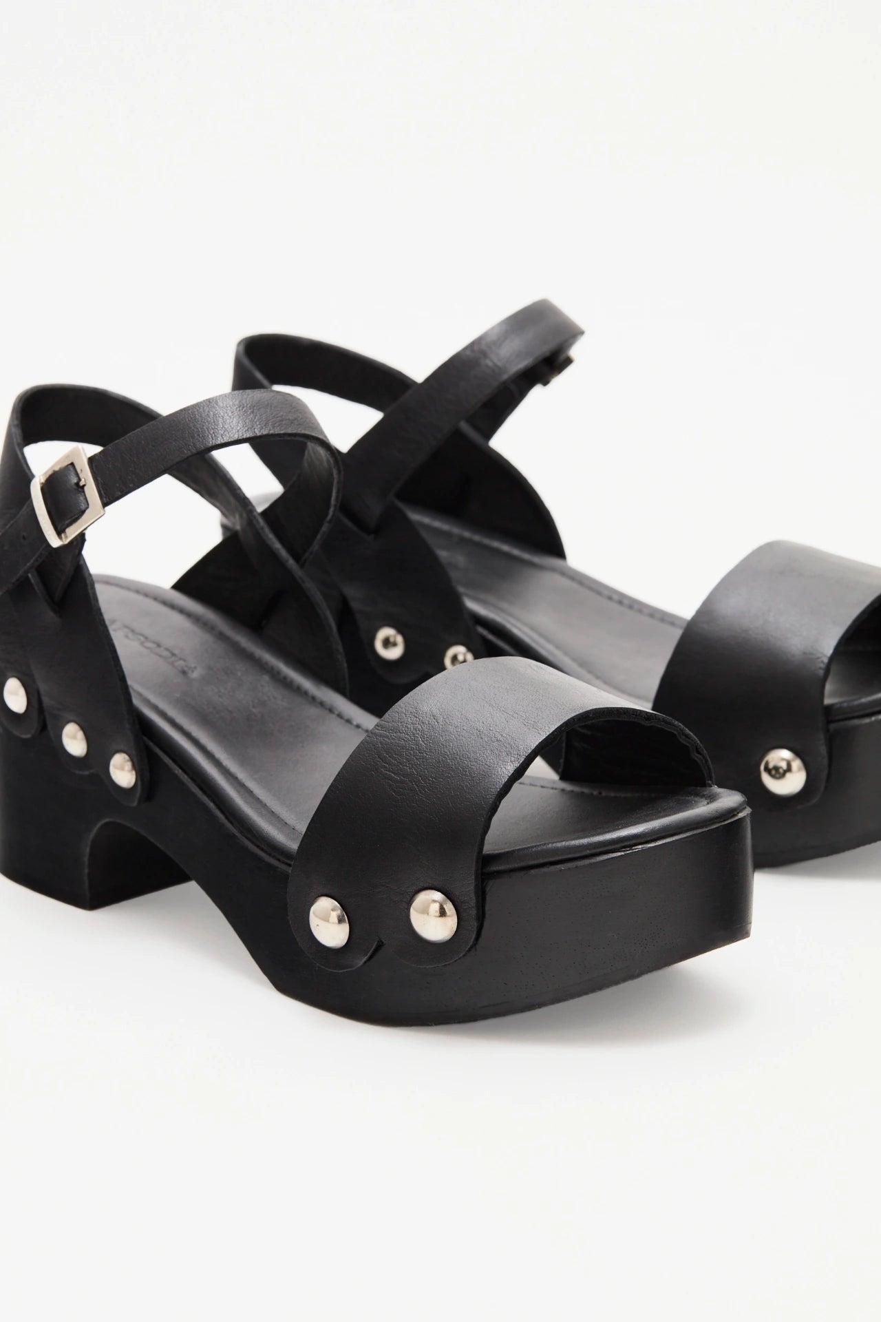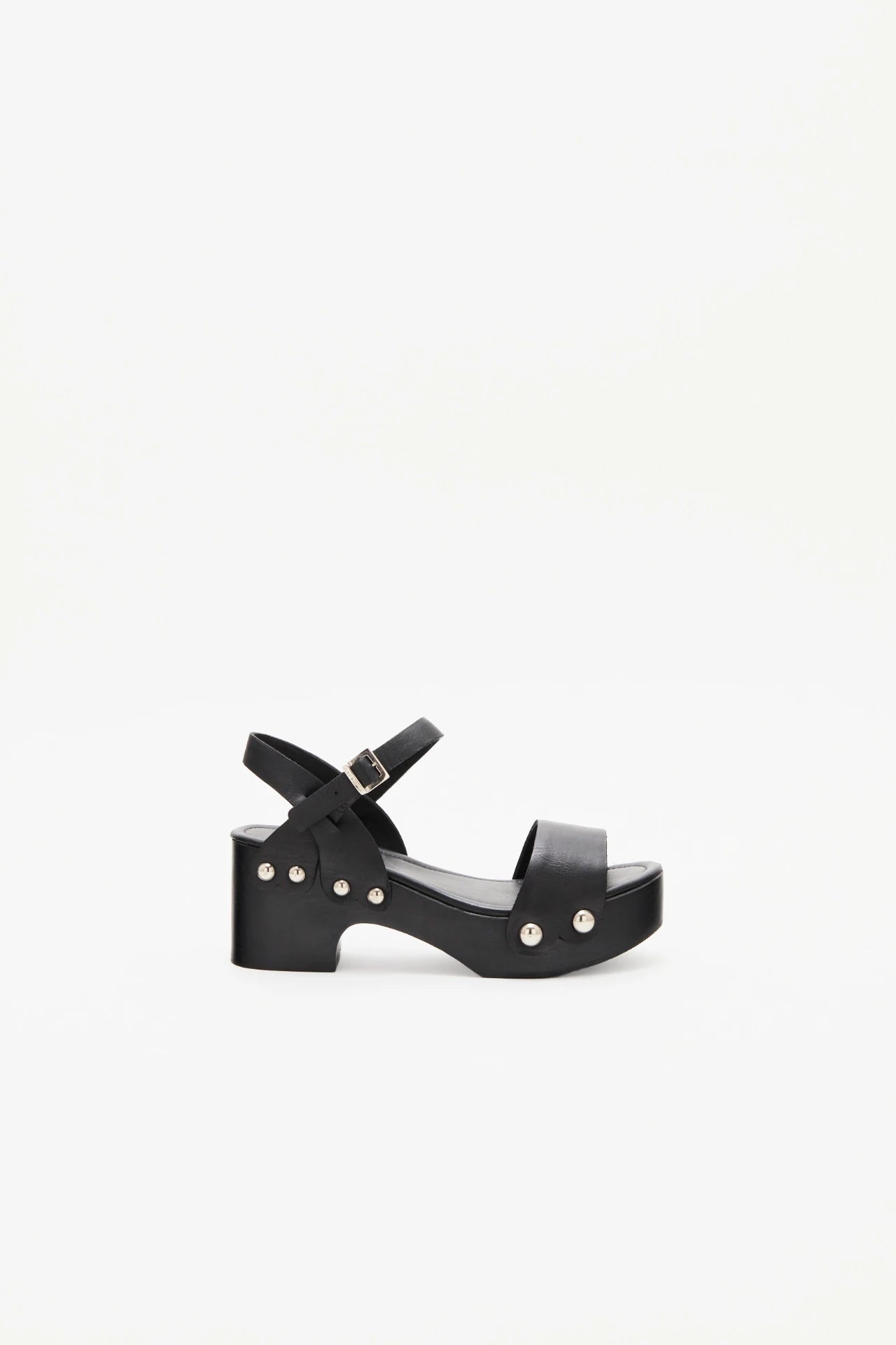 Sandalia con plataforma de madera con tira adelante y pulsera, confeccionada en cuero. Liviana y cmoda para looks tanto de da como de noche.